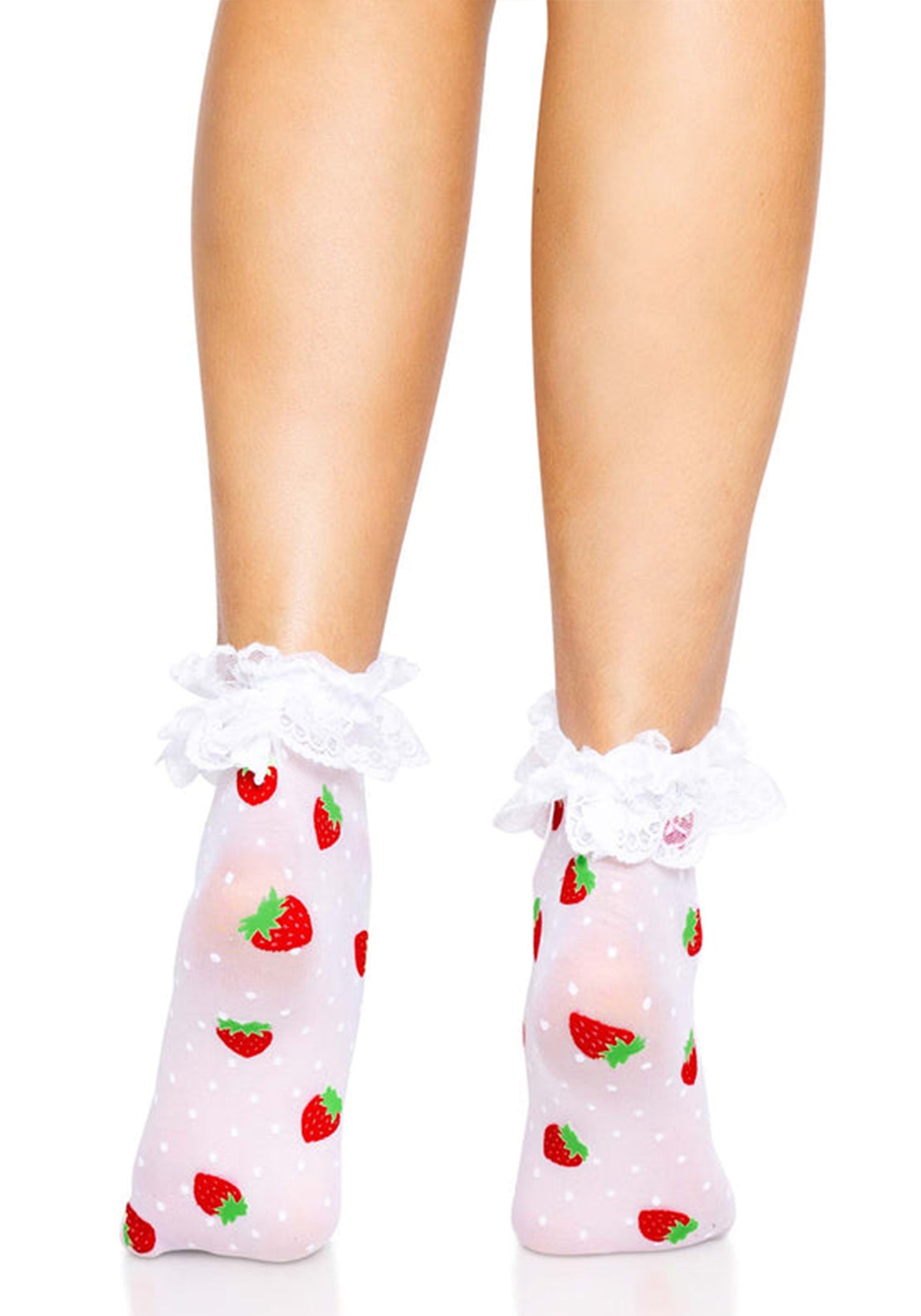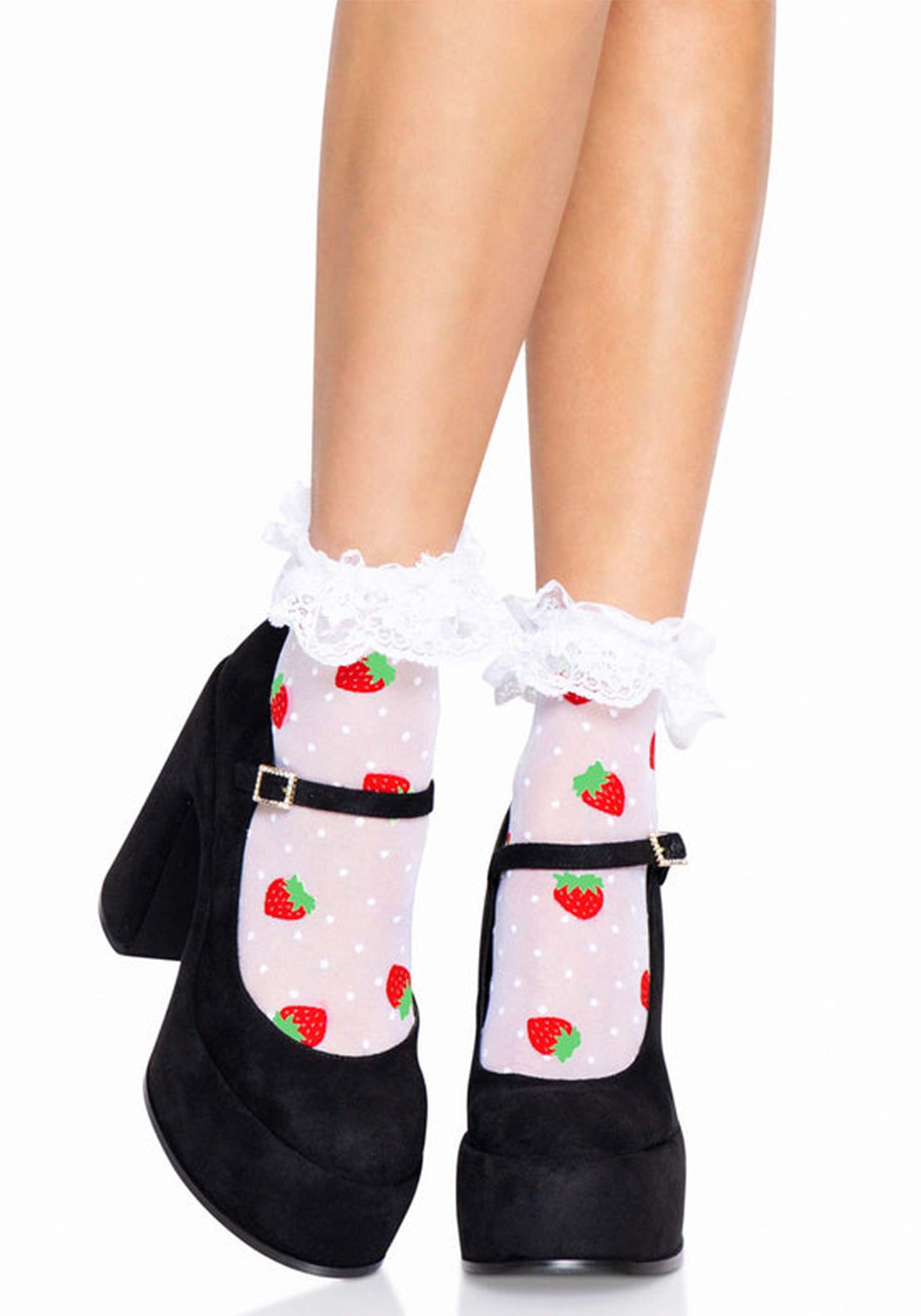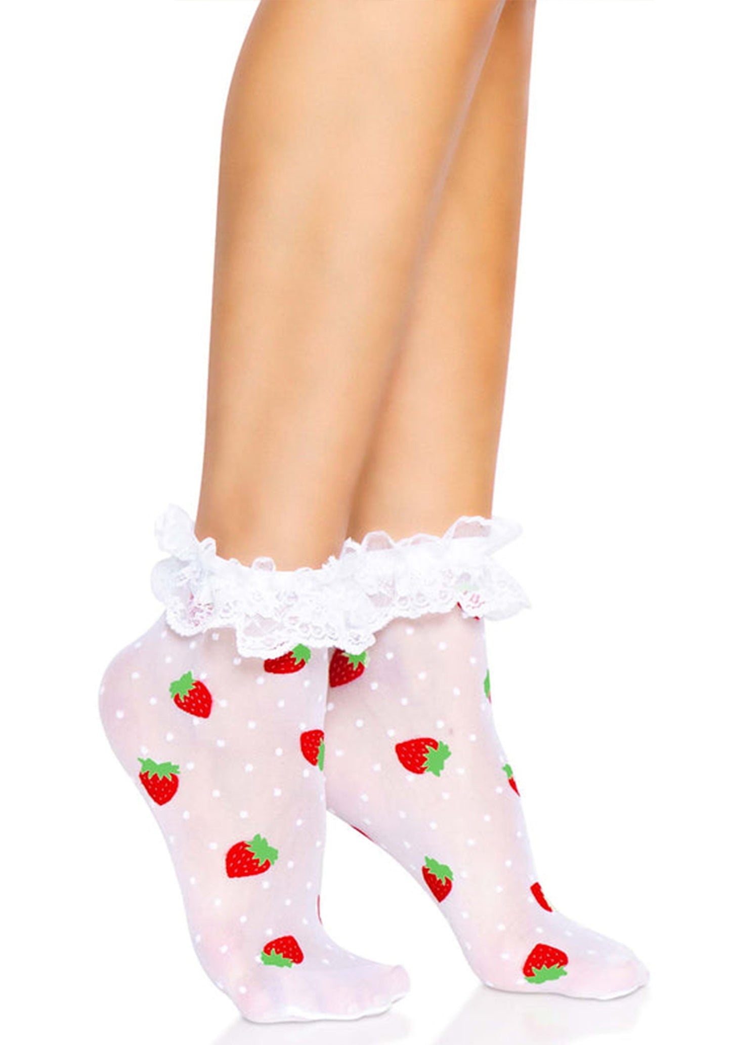 Bring some sass and sweetness to your look with these darling strawberry ankle socks by Leg Avenue! The woven strawberry pattern and adorable polka dot detail make these anklets a must for any kawaii queen – and the lace ruffle cuff adds an extra hint of sweetness. Show off your style and be prepared to turn some heads with these irresistible anklets – it's the perfect way to sweeten up your style! Whether you're headed to class or on an adventure, you'll be sure to stand out from the crowd.
