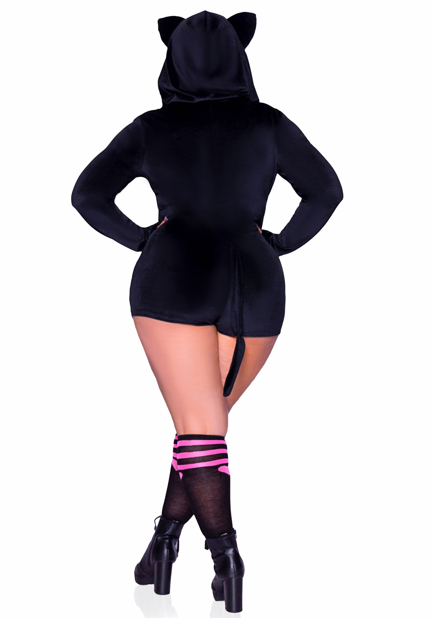 Here, kitty kitty. Hear her purr in this black velvet kitty cat. This cute plussize costume will keep you cozy and warm. You can wear this costume during a Halloween party or Carnival. The velvet kitty cat features long sleeves, adorable pink ears, a front zipper and has a ultra-soft plush velvet fabric.