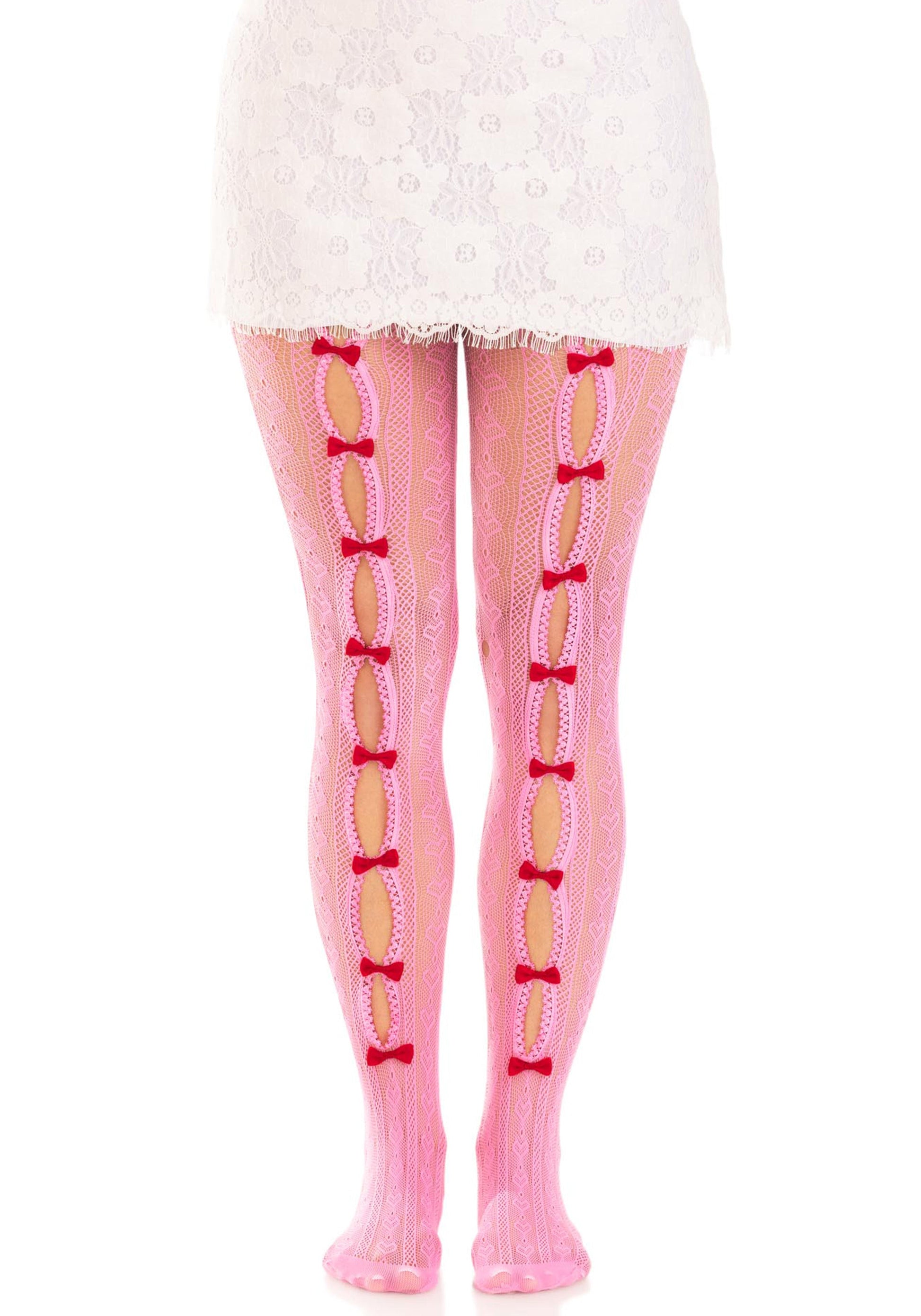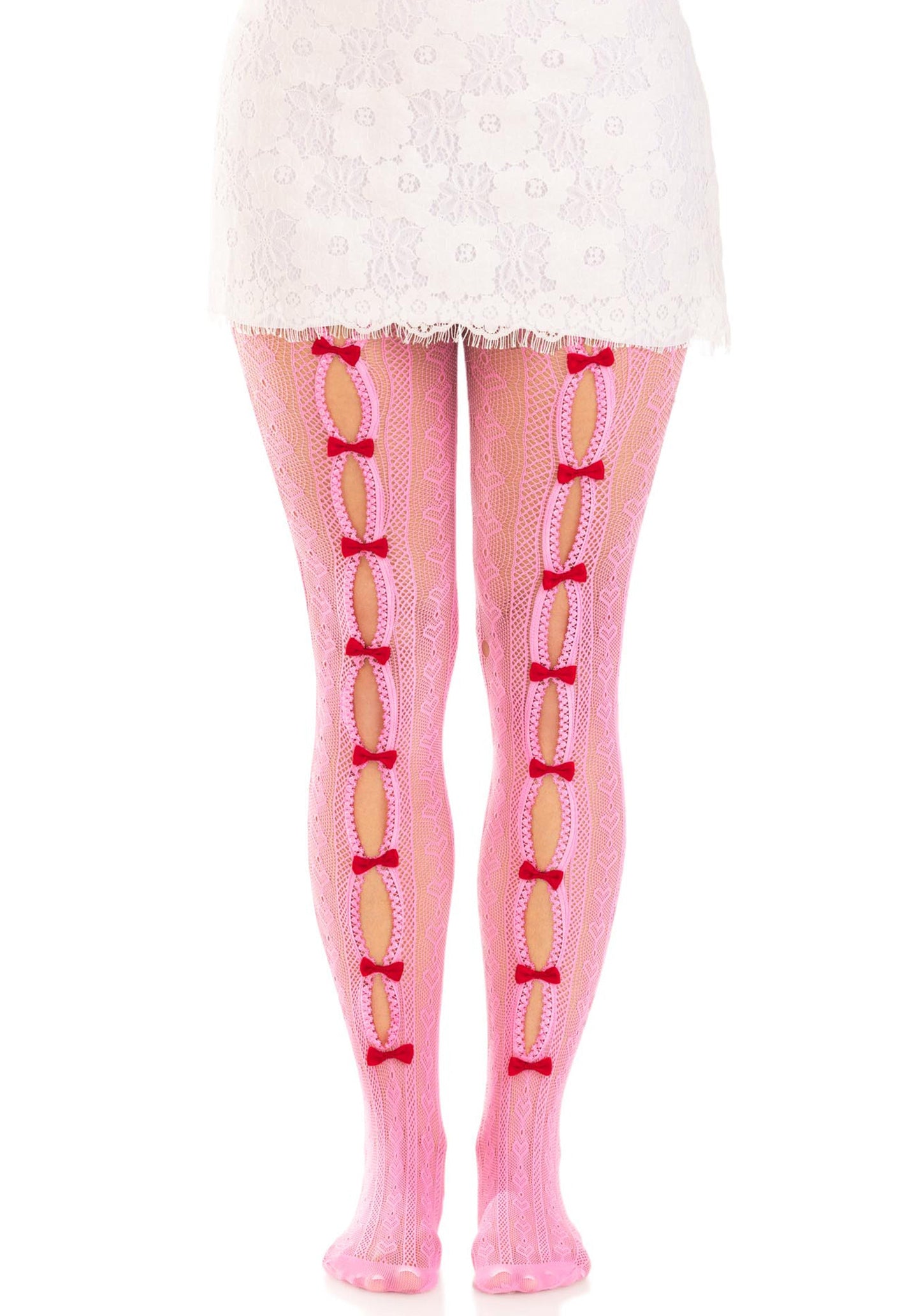 Adorn your legs with charm using the Sweetheart Net Tights by Leg Avenue. These kawaii-inspired heart net pantyhose, featuring mini bows and cut-out details, add the perfect touch of fun to any outfit. Ideal for pairing with skirts and shorts, these flirty tights are a delightful addition to your wardrobe.